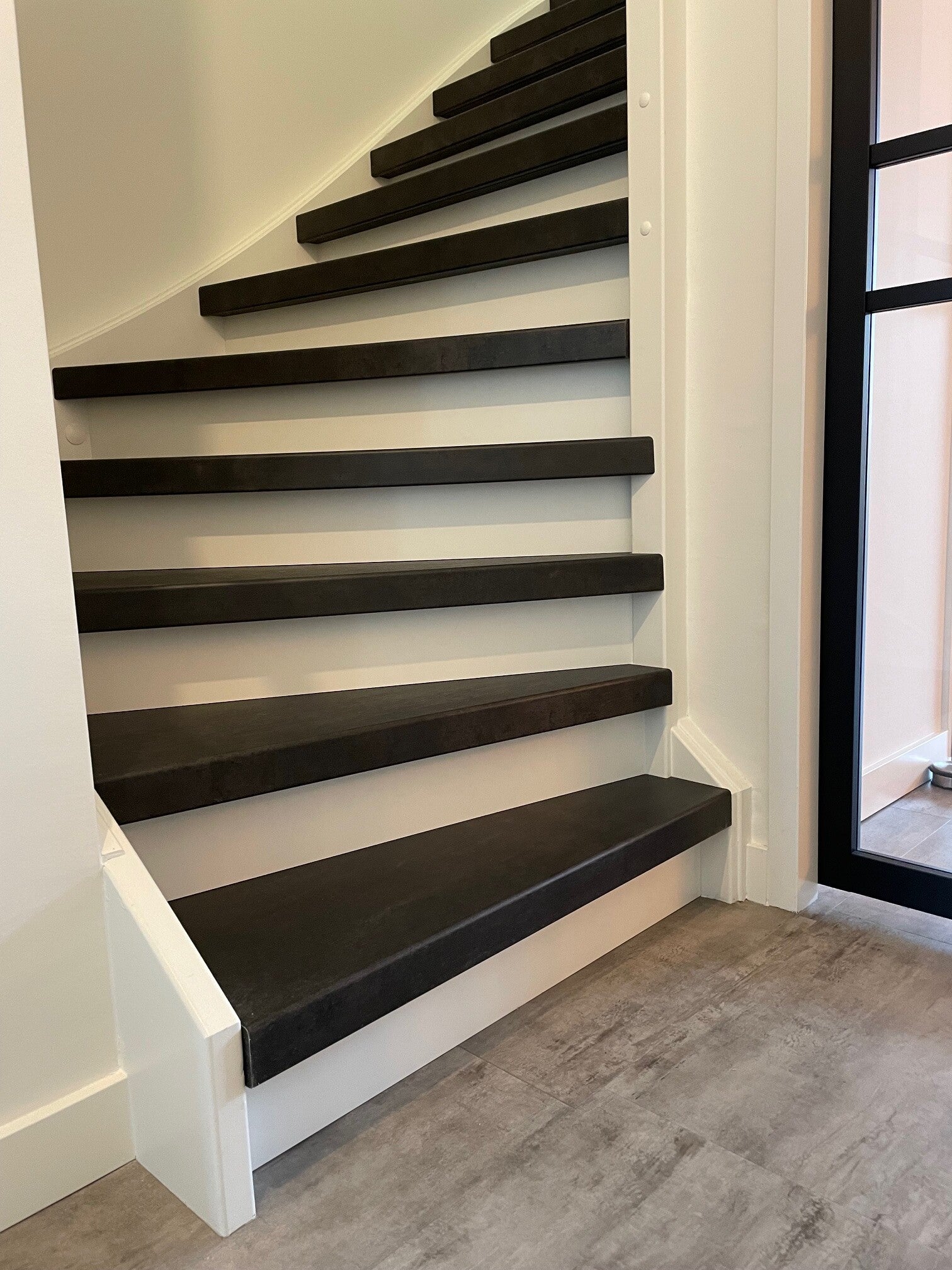 Bijkerk Maatwerk levert maatwerk traprenovaties in hoogwaardig laminaat, perfect afgewerkt en vaak binnen één dag gemonteerd.
